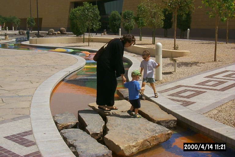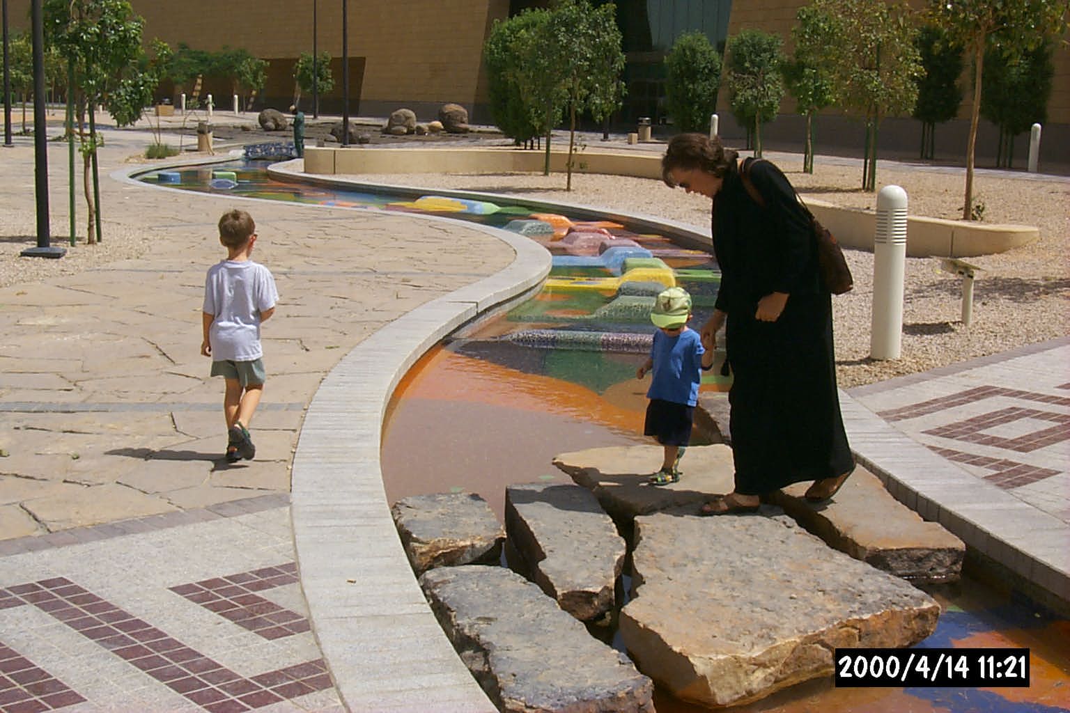 Museon ulkopuolella on kiva puisto, jossa juoksee keinotekoinen puro
