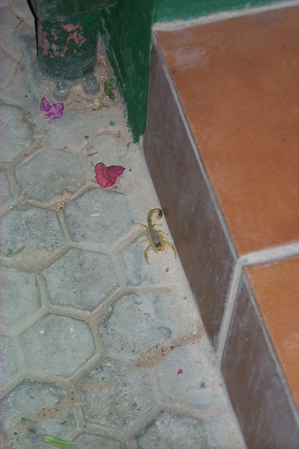 Local brown scorpion, reportedly lethal even for adult human. We did not put